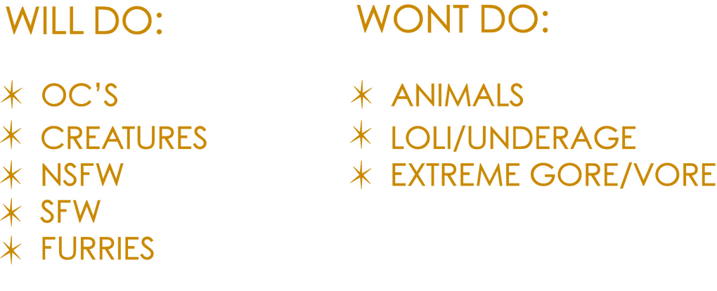 ♦ I reserve the right to refuse any commission.♦ For non-commercial use only, for commercial use please contact via email.♦ You must be 18+ to commission.♦ You must fill out a commission form to request a commission (linked below)
